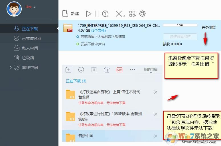 附上解决迅雷9及迅雷极速版任何资源下载任务出错、内容违规问题: