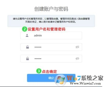 1、在已连接可正常使用的路由器连接的电脑或手机中打开浏览器,清空地址栏并输入路由器的管理地址192.168.1.1,在弹出的创建账户与密码界面中,设置用户名及管理密码,设置6~15位的管理密码,点击“确定”,登录路由器管理界面,如图: