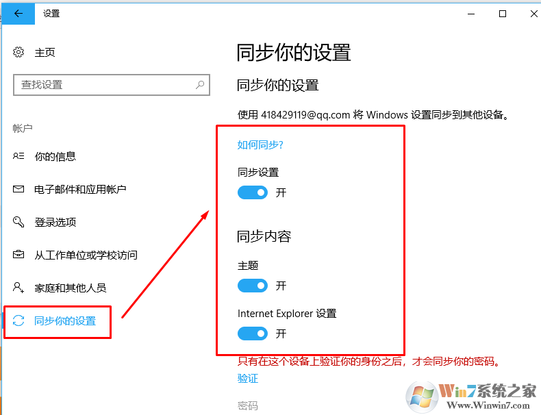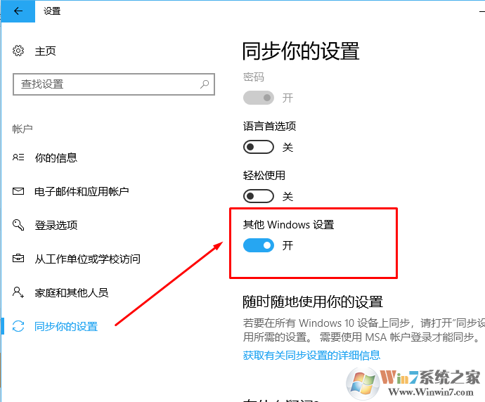 3、登陆账号后选择到同步你的设置。将自己想要的同步设置打开即可。
