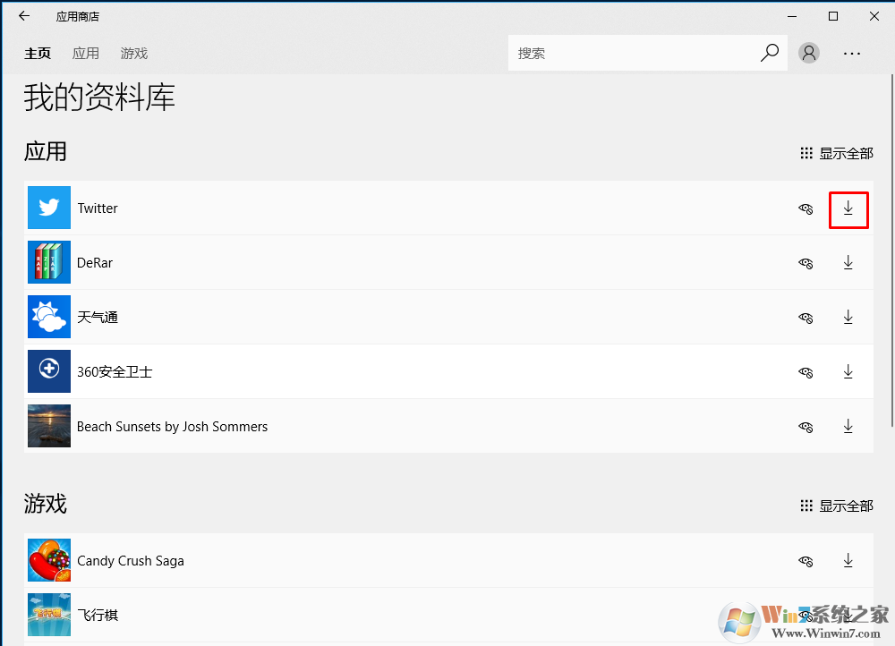 3、在资料库中点击显示全部,我们就可以发现我们之前安装的所有应用都在里面。点击最后的下载即可。