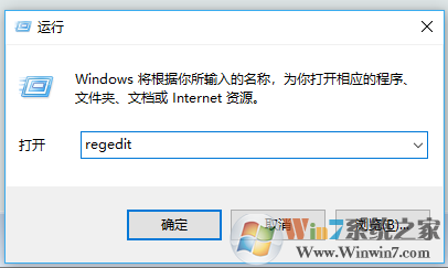 一、按下Win+R键,打开命令运行窗口输入“regedit“,单击确定。