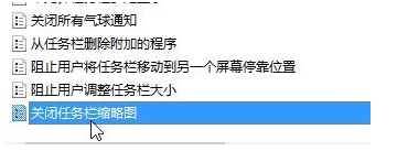 3、在右侧双击打开最底部的【关闭任务栏缩略图】;