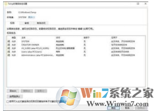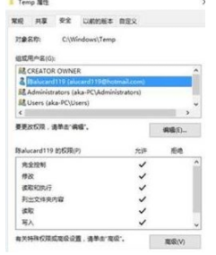2、进入Temp文件夹属性中的安全高级设置,在这一窗口写入用户名称,检查后确定即可;