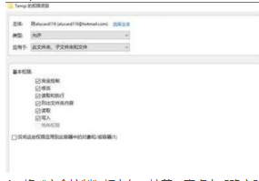 3、此时账户添加成功,在“基本权限”中勾选“完全控制”,点击确定。然后在“Temp的高级安全设置”中可以看到该账户已经取得Temp文件夹的完全控制权限,点击确定后会出现“Windows安全”对话框,再次点击确定;