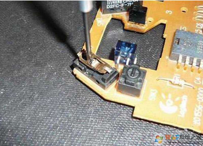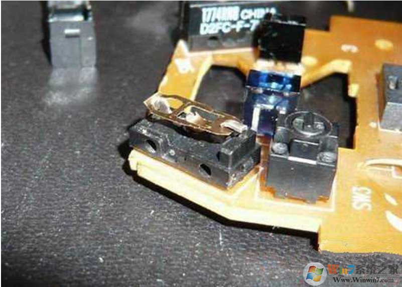 也许你的鼠标和这张图不太一样,没关系,只要是这种长方体的微动开关就行。我们要做的工作就是自己动手修复微动开关。