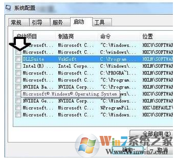 2、再定位到启动→看是否有随机启动的文件中提到90312.dll文件,如有禁止随机启动即可(正规的QQ文件不会在C盘根目录,且无需随机启动)。