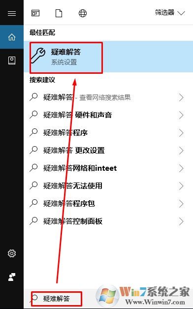 1、打开小娜输入疑难解答。