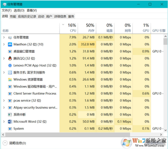 4、 系统有不正常耗电时及时查看任务管理器中的资源占用,如有系统或软件问题及时修复。