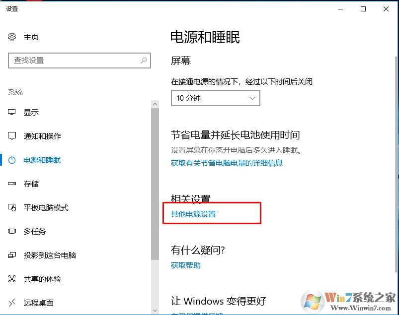 2、然后在出现的界面中,点击其他电源设置,如下图: