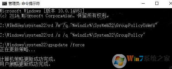 2、这里需要三个命令配合完成,首先可以重置用户策略(执行后无说明):