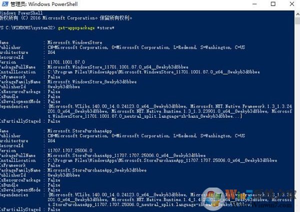 5、接着在框中继续输入:add-appxpackage -register "C:\Program Files\WindowsApps\*Store*\AppxManifest.xml" -disabledevelopmentmode 按下回车键重新安装商店。