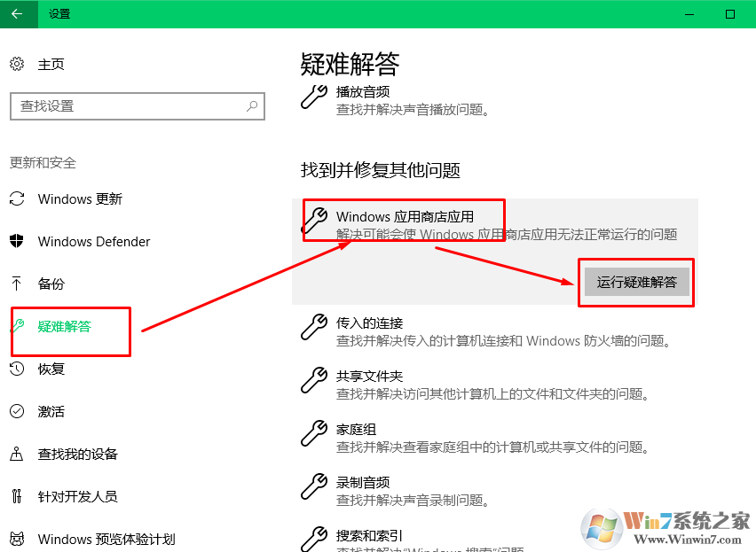 3、点击疑难解答,找到Windows应用商店疑难解答。