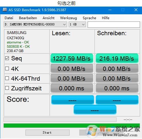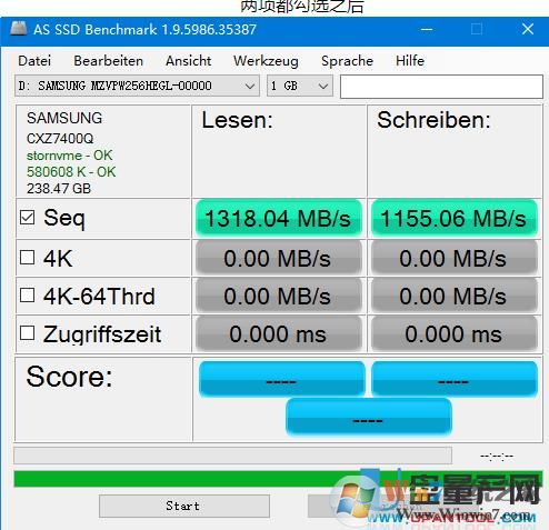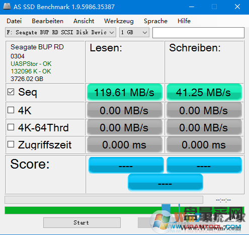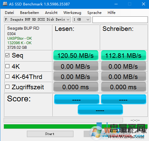第三步,再用AS SSD Benchmark测速看看,达到100MB/s了