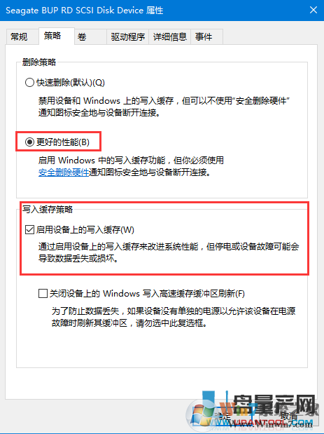 第二步,按如下的勾上,启动设备上的写入缓存