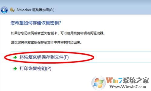 4、点击【将恢复密钥保存到文件】,选择保存位置点“确定”即可。