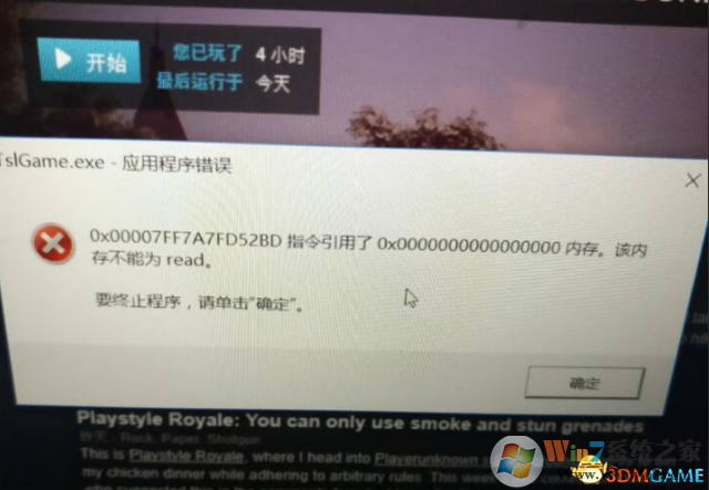 win10系统玩绝地求生吃鸡报错提示该内存不能为read/written的修复方法