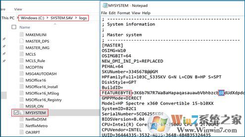 情况一:若没有点击过试用按钮,或者已经F11一键恢复了出厂设置,还没有开始激活Office,请到C盘system.sav文件夹内的logs文件夹下用记事本打开Mysystem.ini文件,将下图FEATUREBYTE中的”d8”改为”fg”并保持退出。