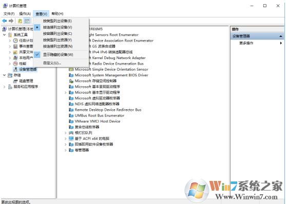 2、然后点击查看选择按连接列出设备和显示隐藏的设备,之后它会出现下面这个界面: