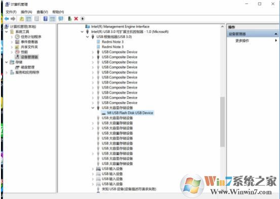 ②如果还在不变半透明我们就要重启电脑(记住不能插入U盘);重启电脑之后按照上面的步骤打开设备管理器,你会发现你刚刚插入U盘加载的驱动还在上面,它变成半透明了。