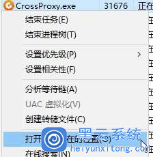 3、切换到任务管理器,在crossproxy.exe上单击右键,选择“打开文件所在的位置”;