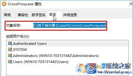 5、切换至“安全”选卡,复制下面【对象名称】后面的现象路劲;