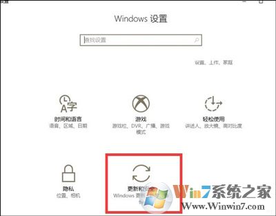 2、接着,就打开了Windows设置窗口。点击最后一个“更新和安全”。