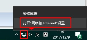 2.右键任务栏右小角网络标志,选择打开“网络和internet”连接