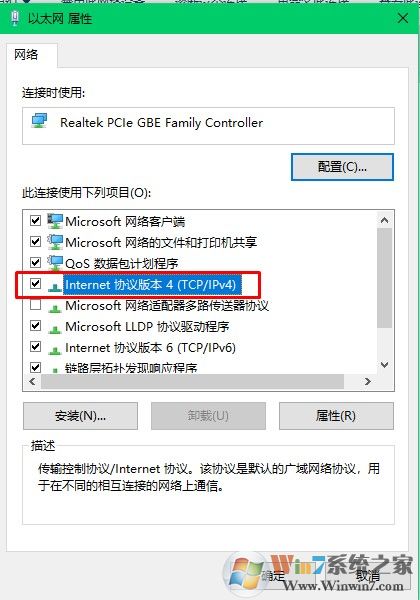 5. 选择“Internet协议版本4 (TCP/IPv4)”,点击“属性”。