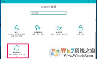 2、在打开的Windows设置窗口,点击【更新和安全】;