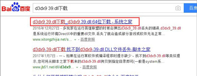 4、打开浏览器,搜索:d3dx9_39.dll下载,找到下载d3dx9_39.dll文件的网页下载d3dx9_39.dll文件;