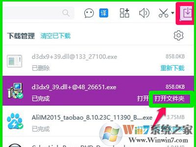 1、文件下载完成以后,点击:打开文件夹;