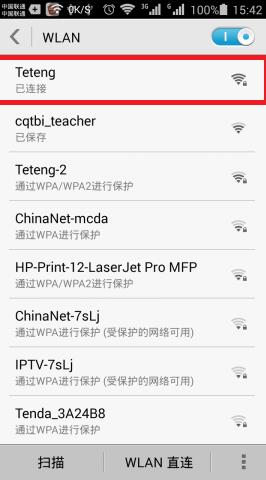 第一步先把手机连接无线到要改的那个无线网络,搜索找到路由器的wifi名称,然后使用之前的wifi密码连接。注意:如果是一台新购买的无线路由器,这时候是不需要密码的,可以直接进行连接的。如下图已经连接Teteng无线网