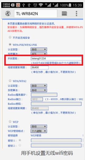 2、设置wifi密码:点击“无线设置”——>“无线安全设置”——>点击右侧界面的“WPA-PSK/WPA2-PSK”加密方式(这种加密方式最安全)——>设置“PSK密码”——>点击“保存”。