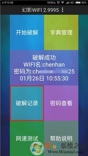 为有效缩短时间并提高效率,软件会对8位Pin数值的前后4位,同时依次分段进行递增和递减的尝试,当Pin的前4位正确后会发出声音提醒,此时软件将前4位固定,并继续依次尝试后4位数字。若已找到正确的Pin码并成功连接热点,将立即停止破解并发出声音和推送通知,软件还会弹出破解成功的提示,此时点击“查看密码”或切换到“记录”页面中,即可查看该热点的PIN码及无线密码,若以后热点主人突然修改了无线密码,也可在软件中直接输入该PIN码,再次尝试破解连接并重新获得密码。