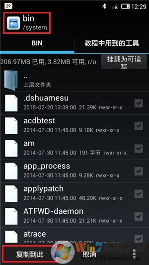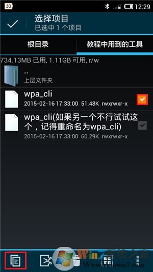 由于安卓默认不支持验证PIN码连接无线网络,故必须将相关的驱动功能植入系统中,否则无法通过该软件实现暴破PIN码。先在文末附件中下载名称为“wpa_cli”的内核文件,到手机虚拟内存的任意位置中,然后打开R.E管理器并在右边的“存储”一栏中,找到其所在位置后点击该文件右侧的勾将其选中,接着点击底端左侧第一个“复制”按钮,然后在左边的“根目录”一栏中,找到“/system/bin/”目录并点击“复制到此”将其拷贝到该位置。如果当前文件系统挂载为只读状态,此时会弹出修改挂载为可读写的提示框,直接点击“确定”键即可。