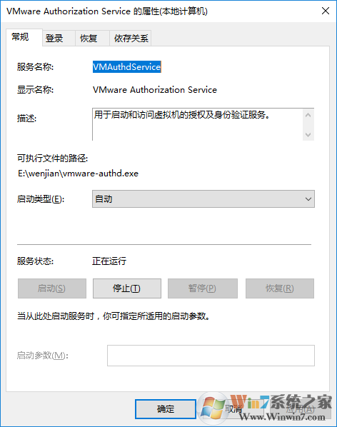三、在VMware Autheffication Service的属性窗口中,将启动类型改为自动,并启动该服务即可。