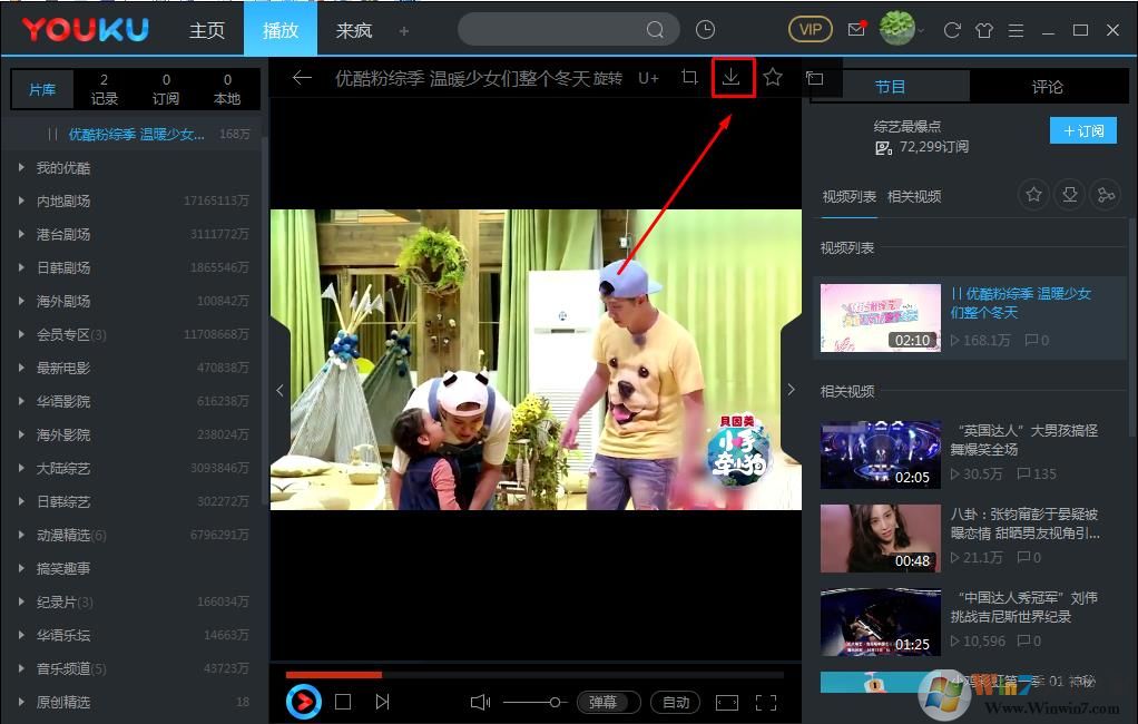 1、打开优酷客户端,播放你想下载的视频,然后点击右上角的“下载”,如下图;