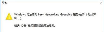 以上就是win10系统开启peer networking grouping服务就会提示依赖服务或组无法启动错误1068的解决方法了,希望对大家有帮助。