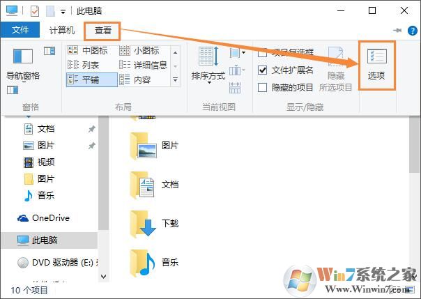 2、我们打开“此电脑”→ 单击“查看”,选择”选项”。