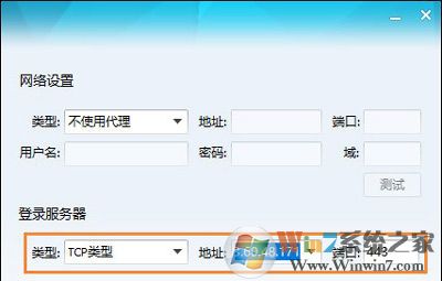 1、在登录页面选择设置—选择登录服务器,类型为TCP登录;
