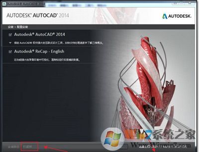 7、选项全选,点击浏览更改软件安装路径:建议安装到除C盘以外的磁盘,可在D盘或其它盘里面新建一个文件夹CAD2014,点击安装。