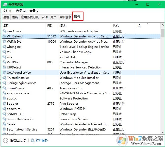 服务页面下,我们可以看见系统所有启动过的服务并查看哪些服务是在运行中的而哪些服务是没有启动的。