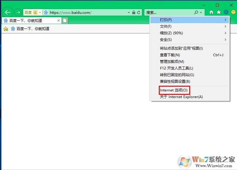 1、打开IE浏览器点击“设置”-“Internet选项”;