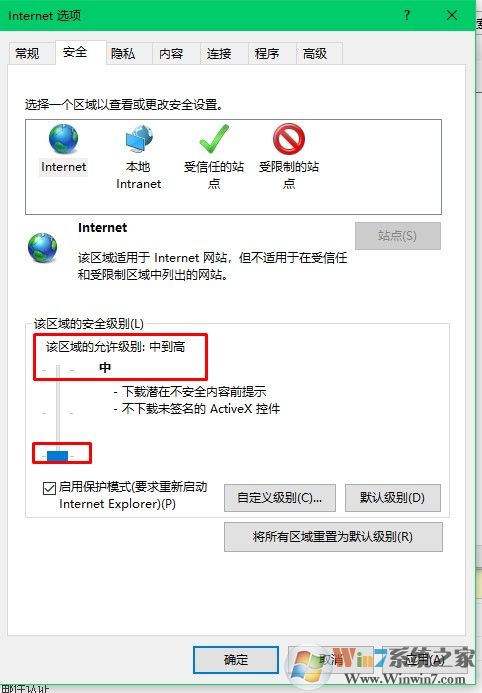 4、点击“安全”-将“安全级”调为中级;