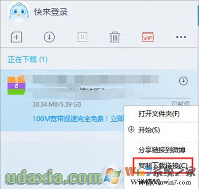 2、在迅雷中右击资源不足的任务,找到并点击“复制下载链接”。