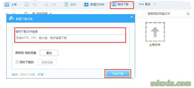 3、接着打开百度云,点击工具栏内的“离线下载”,粘贴刚才复制的下载链接,点击确定即可离线下载。