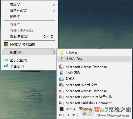 1、首先在桌面空白的地方用点击鼠标右键,创建个“快捷方式”。