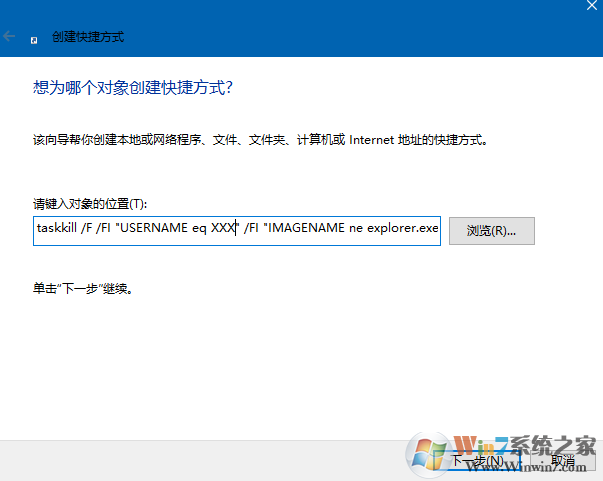 taskkill /F /FI "USERNAME eq 用户名" /FI "IMAGENAME ne explorer.exe" /FI "IMAGENAME ne dwm.exe