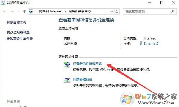 4、进入网络和共享中心后,在下面选择设置新的链接或者网络,然后输入你的网络的账号密码就可以链接了,