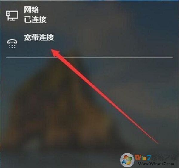 1、在桌面右下角的网络图标点击一下,然后选择宽带链接,